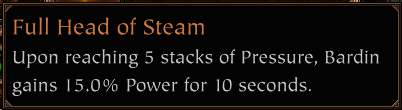 As a power boost, information technology increases your damage/stagger/carve. Every time yous reached 5 stacks of pressure level, yous get 15% power for 10 sec. Y'all can maintain information technology by cranking at 5 stacks of Pressure before the previous Pressure level stacks expired. Using this talent requires y'all to pay attention to your Force per unit area stacks and power buff very carefully since y'all want to creepo every fourth dimension previous Pressure stacks nearly disappeared to reduce your full cranking time.