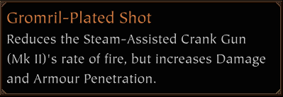 Reduce your burn rate significantly but proceeds a lot more armour damage. You lot can also damage Chaos Warrior with this version of Crank Gun, just the damage is not great. Your ability to deal with normal armour units & specials increase by a huge margin by trading a good chunk of horde/Monster impairment.