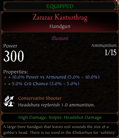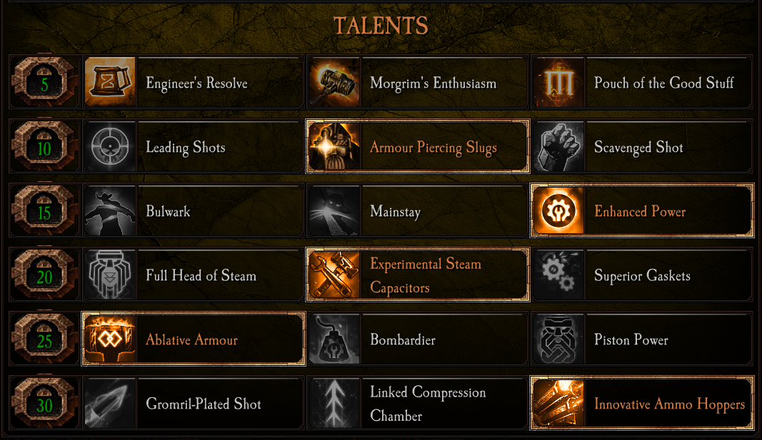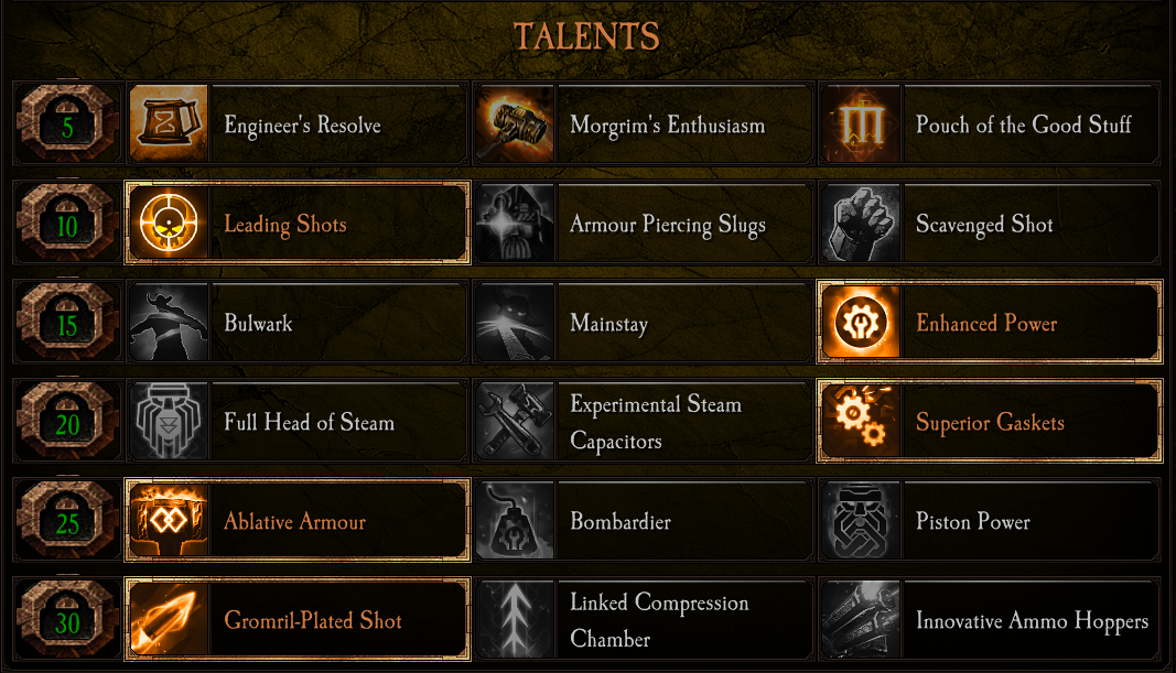 Handgun Breakpoints: ten% infantry, 10% chaos, 10% skaven, Scout(passive), Enhanced Power