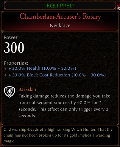 With high THP farm speed and high constant impairment reduction from talent,Barkskin is very decent for tanking unavoidable damage. If you struggle with farming THP or hit merchandise a lot, useBoon of Shallya.