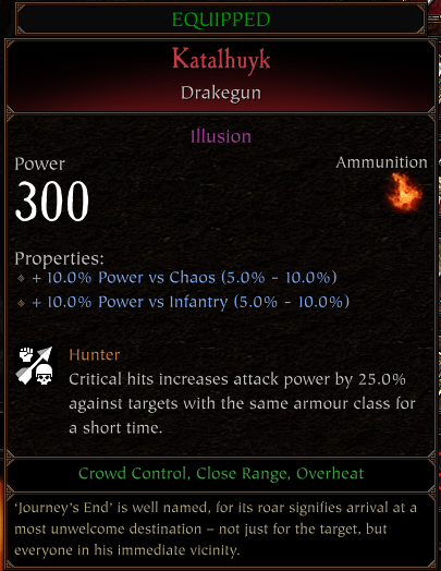 Increase your Crank Gun DPS on Monster and effectiveness on Chaos Warrior. Besides easy impairment boost for your Drakegun since it can procHunter about instantly with this talent.